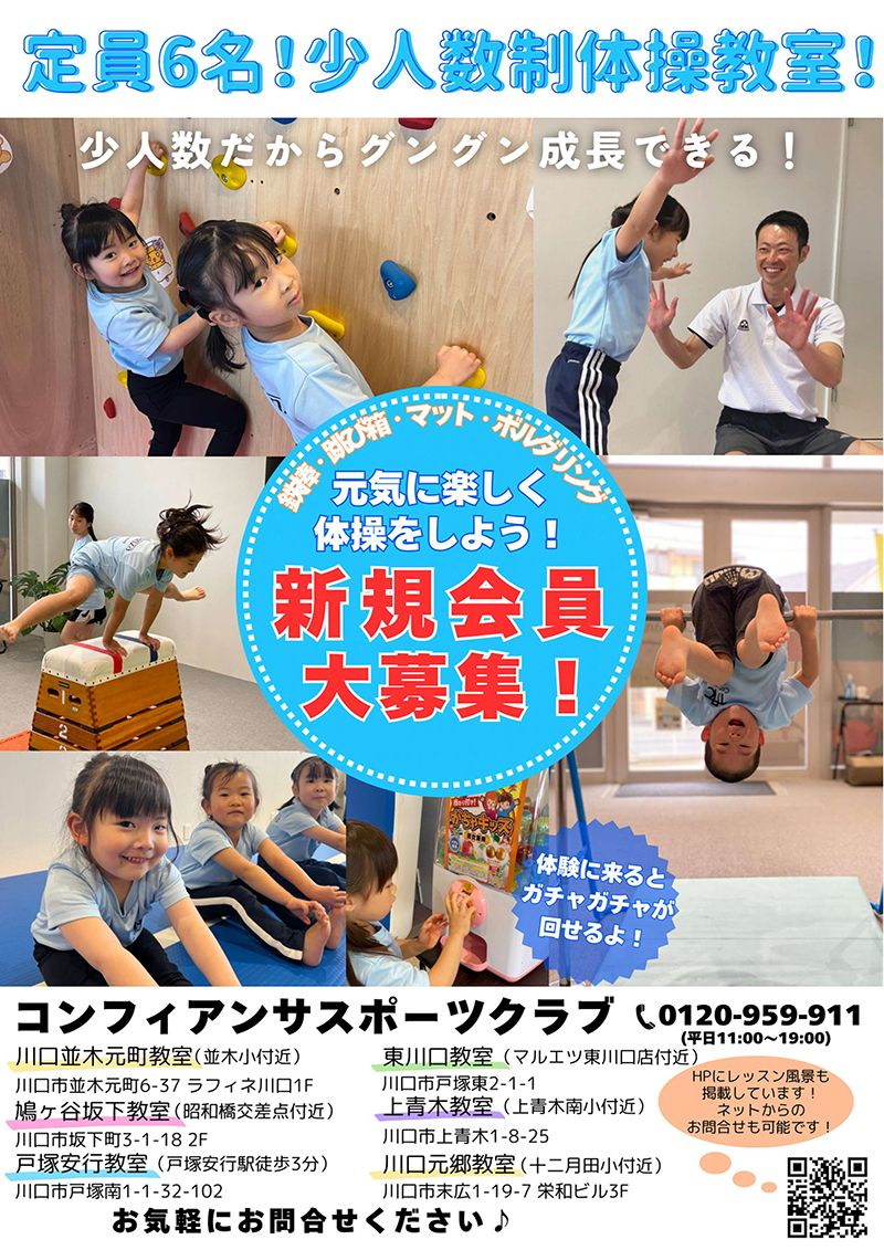 | ホームページ | https://www.cfa-gymnastics.club/branch/kitaurawa.html | ||||||||||||||